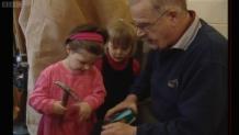 Opening sequence: The Teletubbies laugh at how their chairs squeak and honk when they sit in them.