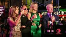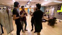 In another team challenge the designers have to create cohesive looks for women at work. Marie Claire magazine's Editor in Chief Joanna Coles is the guest judge.