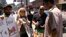 In a sales-based test, the clothiers are tasked to sell their goods to folks on the street. They must also spin out fall looks. Designer Anna Sui is the guest judge.