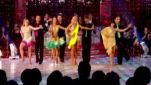 All 14 couples perform against each other for the first time this season, dancing either a Salsa or a Foxtrot. Last weeks judges points are added to this weeks, but who will be at the bottom of the leader-board.