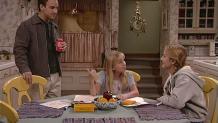 Shawn and Jack's ne'er-do-well father Chet reappears on campus suddenly and, confronted by an angry Shawn, promises that he has come to stay and make amends to his sons for never being there for them. But after treating them to a steak dinner and consuming a piece of Rachel's "killer" chocolate cake, Chet suffers a heart attack. Shawn reveals that his anger at his father is partly fear that his own apparent inability to connect emotionally is inherited, and it appears a reconciliation might taken place -- then Chet has a second attack and dies. This is a powerful and quite touching episode, with a particularly affecting performance from Rider Strong, marred only by the obligatory presence of the entire cast in the emergency ward.