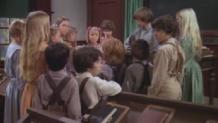 Laura and Mary start school for the first time. That is where they meet Nellie Oleson. Since Laura hasn't been to school before, she tries especially hard with her schoolwork. The students have to write an essay to present in front of the class. Laura recites what she would have written on the paper if she could have, instead of what was actually written on it.