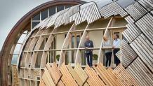 Kevin McCloud visits a house belonging to an engineer that resembles a giant snake. The building was inspired by an ammonite shell and has a scaly, curving structure that spirals over two levels and combines natural materials with the latest modern technology. However, completing the project within the 12-month schedule may not be possible.
