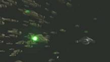 Voyager encounters a region of space owned by a mysterious race of aliens that would take 15 months to go around. Upon crossing the boundaries, a swarm of ships attach themselves to Voyager's hull - an act which drains the ship's power supplies and threatens to destroy it.