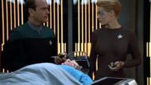 Stardate: 51929.3 - When Voyager encounters a deadly radioactive nebula, Captain Janeway decides to save time by going through it and placing the crew in protective stasis with only Seven of Nine and the Doctor left to protect the ship. Seven soon starts experiencing hallucinations when an alien wants to trade vital supplies.