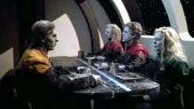 Stardate: Unknown - The crew discover an ancient communications relay that extents to the Alpha Quadrant. They are able to send the Doctor through to a Federation ship at the other end, the experimental U.S.S. Prometheus, only to discover that it has been taken over by Romulans.