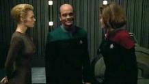 Stardate: 51003.7 - The crew of Voyager come up with a solution to the Borg's problem, and are willing to share it with them if they grant safe passage to the ship and its crew. In order to help with the negotiations, the Borg send over a drone designated Seven of Nine as a representative of the collective.