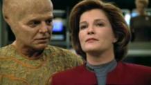 Stardate: 51762.4 - An alien test pilot who has the capability of switching bodies manages to take Tom's place aboard Voyager in order to escape the law.