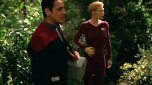 Stardate: 54817.5 - Chakotay and Seven Of Nine are left stranded on an alien planet when they crash into a planet inhabited by primitive tribes. Voyager is prevented from finding them by a mysterious energy barrier surrounding them.