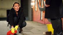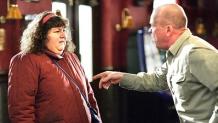 Worried about Ronnie, Roxy runs across the square to the Vic. Inside she finds her sister cradling her father on the floor. Archie has an injury to the head. ‘I’m sorry’, he stutters, before dying in Ronnie’s arms. A horrified Roxy backs away. She leaves the Vic and hysterically tells the carol singers that she thinks her dad is dead.