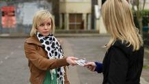 Denise's hen party is gatecrashed by Owen, who claims to know the truth about Trina's death - and a revelation regarding the bracelet later confirms his suspicions. Phil confesses the extent of his money problems to Peggy, and Chelsea tries to flirt with Dr Jenkins in his office - but Roxy's unexpected arrival leads to an embarrassing scene.