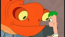 Phineas and Ferb find a chameleon in the backyard, who grows to the size of a dinosaur, thanks to Doofenshmirtz's Gigant-Inator, and takes a walk through downtown. Meanwhile, Jeremy teaches a song to Doofenshmirtz, who plans to use it to summon aliens to do his bidding.