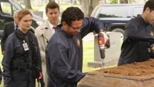 A repo man's remains are found in a septic tank, and the Jeffersonian team must work together to figure out who the killer is. When the team discovers that the victim had a troubled past, some key witnesses from his earlier days become potential suspects. Meanwhile, handsome and charming Rodolfo Fuentes has defected from Cuba, where he was a forensic anthropologist, but now needs an internship to complete his degree. Brennan agrees to try him out as an intern on a case, and Brennan and Booth discuss whether or not Christine should have a religious upbringing.