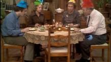 The Jeffersons come to dinner at the Bunkers' without racist husband George, who refuses to socialize with his white neighbors.