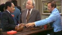 Archie unwillingly passes George Jefferson a counterfeit twenty-dollar bill.