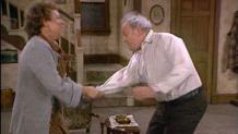 Archie spars with Mike's draft-dodger friend at Christmas dinner.