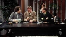 Howard insists on joining Bob and Emily's anniversary dinner at a fashionable Chicago restaurant in order to enlist their aid in popping the question to Ellen. But he chokes up in the clutch, and Bob is forced to do the proposing for him.