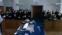 Sergeant Craig Gilmore addresses the congregation at Knowles' funeral and mentions the dead man's habit of chatting up girls which causes a bit of a stir. After the service Superintendent Tom Chandler tries to comfort Knowles' mother but is dragged away by her daughter Tina who blames the police for her brother's death. Meanwhile at Sun Hill DS Vik Singh and DCI Jack Meadows are liaising with Jay Ramsay who is planning to direct a reconstruction of the murder for a TV programme. Meadows is angry when the Director comments about Knowles flirting with the murderer before his death. Outside the chapel PC Nick Klein is helping a young woman with a pushchair and is shocked when she introduces herself as Dani Knowles, Knowles' widow. When she asks about Knowles' death, Klein tells her not to believe the press reports. As the drink flows at the wake the tensions rise between arch enemies Taviner and Gilmore resulting in a full-blown punch up.