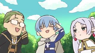 Frieren tests a spell on the Hero Party that makes their sentences end strangely. They decide to have a contest - use the spell on everyone, and whoever laughs first must use the spell for a week. Himmel's sentences end in "nyan," Frieren's ends in "zoi," and Heiter's ends in "po." All three are able to hold in their laughter, but when Eisen speaks, his sentences end in "datcha" and the rest of the party are sent flying.