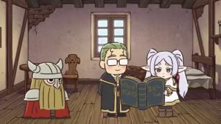 Frieren and Heiter try the spell out on the taciturn Eisen. At first the spell doesn't seem to have worked, but when they ask him about a recent battle, both his speech and his movements increase in speed. Frieren and Heiter conclude that it's good for people to have their own manner of speech.