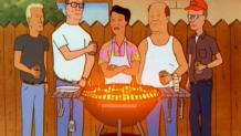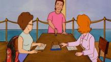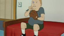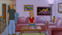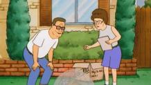 The pilot of King of the Hill introduces us to the town of Arlen, Texas, and the life of propane salesman Hank Hill. Hank spends much of his time standing in the alley outside his house, drinking beer with his three old friends: Dale Gribble, a conspiracy theorist who never notices that his wife Nancy is having an affair with her "healer" John Redcorn (or that his son Joseph looks a lot like Redcorn); Bill Dauterive, a divorced army barber; and Boomhauer, a ladies' man of indeterminate employment and even more indeterminate speech. Hank lives with his wife Peggy, a substitute Spanish teacher at Tom Landry Middle School; his son Bobby, who seems to like comedy records better than sports; Peggy's niece Luanne, an aspiring beautician; and his dog Ladybird, a bloodhound whose mother tracked down James Earl Ray.