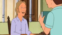 When Reverend Stroup gives the Hills' pew at the Arlen First Methodist Church to another family, Hank and his family decide to find another church. A slick pastor tries to bribe the Hills into worshipping at his Megachurch.