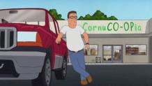 After Hank falls in love with organic food he starts his own mini co-op garden in his back yard.