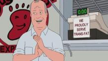 Hank helps Buck Strickland battle the Arlen City Council and a rival restaurant after "Sugarfoots" loses its business due to a local ban on the sale of foods containing trans fats.
