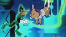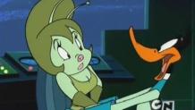 Duck Dodgers responds to a planet's distress signal and mistakes its gelatinous inhabitants for the enemy invaders.