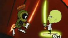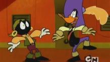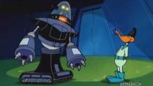 Duck Dodgers and Cadet investigate space barbarians planning to invade Earth. While on the rogue planet, Cadet discovers a shiny rock that transforms him into a gargantuan warrior.