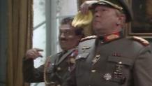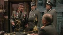 Herr Flick and von Smallhausen are interrogated by the general for impersonating army officers but released on the orders of Himmler - thanks to Helga. A party of intelligence officers are visiting and the Resistance plan to hi-jack their car,steal their uniforms and that way infiltrate the château to get the airmen out. René and Edith are the reluctant 'intelligence officers' but the plan works fairly well until the couple find themselves handcuffed to the airmen whilst the key to unlock them is in Berlin.