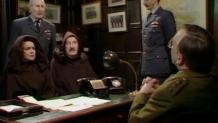 René is to be given a collaboration medal for his help with the removal of von Flockenstuffen. Unfortunately, this causes the Communist Resistance to place a price on his head. He decides once again to elope with Yvette. Michelle orders René to take the airmen to the monastery to be picked up by a lightweight plane. Herr Flick also learns of this news, and he and von Smallhausen have themselves initiated into the brotherhood to gather information and capture the airmen. Unfortunately, René ends up grabbing Edith's hand instead of Yvette's, as the two are rushed aboard the plane bound for England.