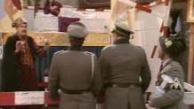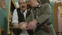 René gets covered in flour and Gruber thinks he's being haunted by Rene's dead 'twin brother' again. The Germans run away and René steals the painting.