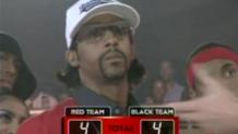 Kevin Hart Joins his black team crew in a game called "That's My Dog". That's where one team mate has to be a dog and the other has to be a person who tries to figure out what the person is saying. The Black Team wins that round. The next round DJ D-Wrek explains "The Questions Game" where a Red Team Mate and a Black Team Mate has to keep asking questions, and if one team mate doesn't know a question to ask the other team wins the point. The Red Team Wins the round. In the Next Game "60 Second Sequel" Both of the teams are giving a movie to make a sequel to. The Black Team Wins that round. In the last round "WildStyle", At the end the black team wins. David Banner get the crowd hyped with a song.