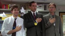 When Michael and Jan try to nail down a potential new client, Christian, by taking him out to Chili's, Michael surprises everyone with what - or who - he does. Meanwhile, back at the office, Jim finds a semi-autobiographical script that Michael has written called Threat Level: Midnight, and he, Pam, Kevin, and the rest of the Dunder-Mifflin workers have a great time acting it out. Later that night, Pam and Jim share their first unofficial date, complete with dinner (a sandwich), candlelight, and Dwight's pathetic fireworks display.