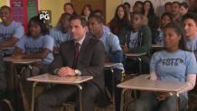 10 years ago, Michael promised a group of 3rd graders he would pay for their college tuition if they graduated. Now comes time to pay, and he can't do it. At the office, Dwight's "Employee of the Month" idea gets Jim in big trouble.