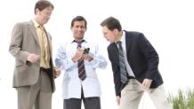 A banker representing a potential buyer comes to the Scranton branch to interview the H.R. department before the sale goes through.