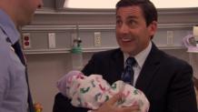 Pam’s contractions begin, but she and Jim are determined to wait it out as long as possible so they can have more time at the hospital. Meanwhile the rest of the office tries to distract Pam from the pain with food and entertainment.