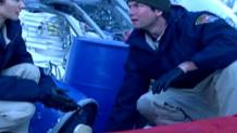 Having just picked up 18 corpses with no visible cause of death from a cargo ship, the Mys Venezia, the whole gang is aboard a 737, flying into a storm. Nigel thinks it's aliens or pirates that are the cause of the deaths, but all speculation ends when co-pilot Dave Rosso tells everyone to buckle up, because they have to fly into the storm. When the engines blow out, the hatch blows off, and the plane starts to dive, Dave tells everyone to brace for the inevitable crash.
