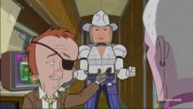 The semi-season opener finds Dr. Venture semi-paralyzed in a trauma-induced coma. Sgt. Hatred and the boys recruit the medical minds of Conjectural Technologies for the mystery diagnosis. Meanwhile, the Monarch is over the moon about his latest gadget, but it's driving a hot wedge in his relationships with his wife and henchmen.