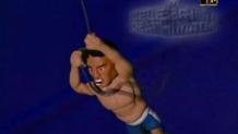 This episode was originally meant to have an all-out war with the cast from the Lord of the Rings, but the power failed in the arena so they showed the three freak fights on tape. The fights are of course repeats.