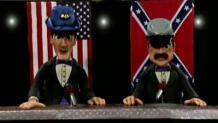 They decide to fight in a real duel with swords, and they starts chopping each other to pieces, finally its down to thumb vs thumb, and one thumb stomps the other... Johnny says that it's Grant's thumb, so the north wins.