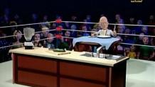 Bob Barker held a little challenge, the question was how many times he broke Anne Robinson's leg. An old lady won and she brought her little dog, but Anne Robinson bites her in her leg and throws the old lady out of the ring, then she grabs the dog and threatens to twist its neck off. Bob Barker freaks out and rips her ouveries out, and some internal organs so she collapses... and Bob Barker is the winner.
