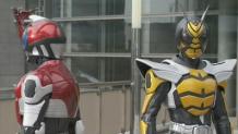 Kagami, after taking up the powers of The Bee, is given the mark of the bee; Kagami wants The Bee and Kabuto to fight together, but orders from ZECT force them to do otherwise.