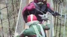Rumors circulate of savage ape-men in the Omi Mountains, but this is a cover for training Destron's Ranger Squad units. In order to keep this secret Mantis-Merang kills anyone who approaches the area. V3 saves Rider Scout Kenji and his older brother from certain death, but the Destron Rangers soon surround them. Meanwhile, the 2nd Unit of the Destron Rangers starts tainting Tokyo's water supply with the deadly Mummification Virus…