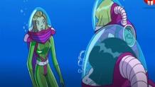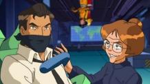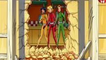 Because she's been blundering more than usual and because they've been joined by rookie WOOHP agent Britney on their latest mission (to find the nutcase slowing down time in major cities) Alex figures the writing is on the wall and quits before she can be fired. Which means that when the mission to the villain's Icelandic lab goes wrong it's Clover, Sam and Britney who get zapped with the molecular augmenter. Shifted into slow motion it's easy for the speed obsessed villain and his two sidekicks to grab them. The trio are tied back to back and left sitting across the room from a bomb that's set to blow in ten minutes. Their feet are free and all they have to do is walk cross the room and push a button to disarm the explosive. The problem is that in their molecularly slowed state they'll be lucky to get halfway there in ten minutes. Fortunately Clover manages to signal Alex with her comm-pact. Alex still has her WOOPH issue rocket boots and flies over to find out why they're call