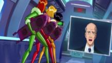 Trent accidentally stumbles upon the spies as they apprehend a ridiculous scorpion villain, witnessing them in action.