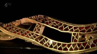 In July 2009, amateur metal detectorist Terry Herbert found an Anglo-Saxon treasure hoard worth over £3 million in a Staffordshire field. The hoard was saved for the nation by Stoke on Trent and Birmingham Museums, who, with the aid of a lottery grant and public donations, purchased it jointly. Two years ago Channel 4 told the story of the discovery of these golden, richly jewelled objects. Now, with the initial phase of the post-excavation process nearing completion, archaeologists are beginning to unlock the secrets of the hoard. After further digging and carefully unpicking the jumble of finds, experts from the museums have realised there were over 3500 objects buried in this small area with the gold alone weighing 11lbs. Thanks to their painstaking restoration work and application of the latest scientific techniques, they can understand the function of these objects, begin to explain how and why they came to be here, and pinpoint the origins of the hoard's raw materials.