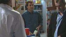 In the aftermath of Carla's departure, their flat has been completly trahsed but Tony has no wish to sort both the flat or himshelf out and when The Factory girls arrive to find Underworld locked, Maria tells them what happened but when Julie heads round to see if Tony alright he find him ina shocking state but slams the door in her face. Tina's problems over the David and Gary situation hit home when Len threatens her in The Kabin.
