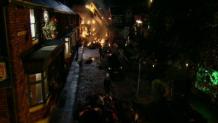 An explosion rips through The Joinery as the stag party are in there. The street will never be the same again as a tram crashes from the destroyed viaduct onto the street.
